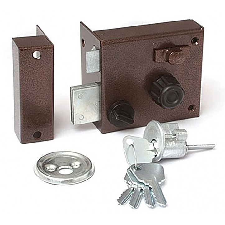 Предназначен для запирания деревянных дверей толщиной до 50 мм. Замок запирается ключом снаружи и ручкой изнутри. Устанавливается на левые и правые двери. Замок имеет блокировку, которая предотвращает открывание дверей снаружи ключом. Рекомендуется использовать для запирания дверей жилых и общественных зданий.