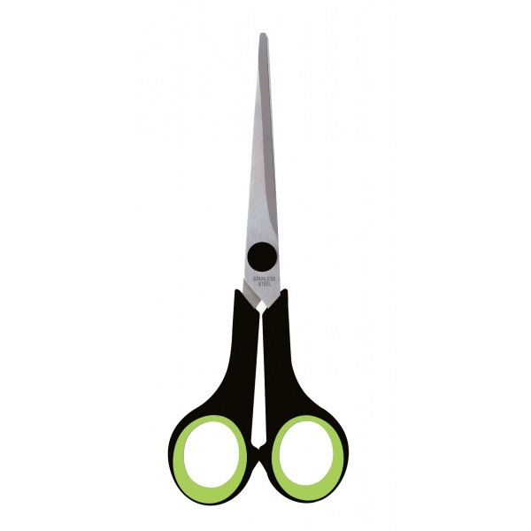 Удобные ножницы для использования в быту и в офисе. Лезвия из нержавеющей стали, рукоятки из ударопрочного двухкомпонентного пластика.