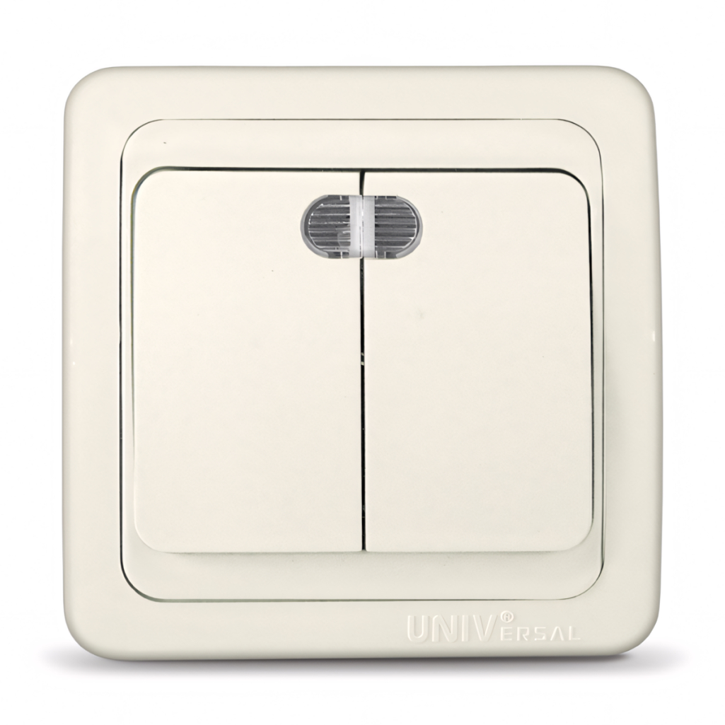 Выключатель UNIVersal Валери 2-клавишный скрытой установки с подсветкой, слоновая кость (Б-В0123)