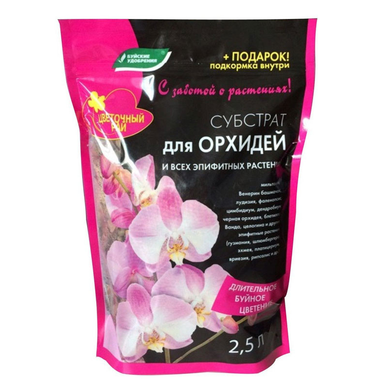 Грунт 2,5л Цветочный рай. Орхидея. "Волшебная грядка" БУЙ - полностью готовый к применению специализированный питательный грунт для выращивания всех видов орхидей. Способствует развитию корневой системы.