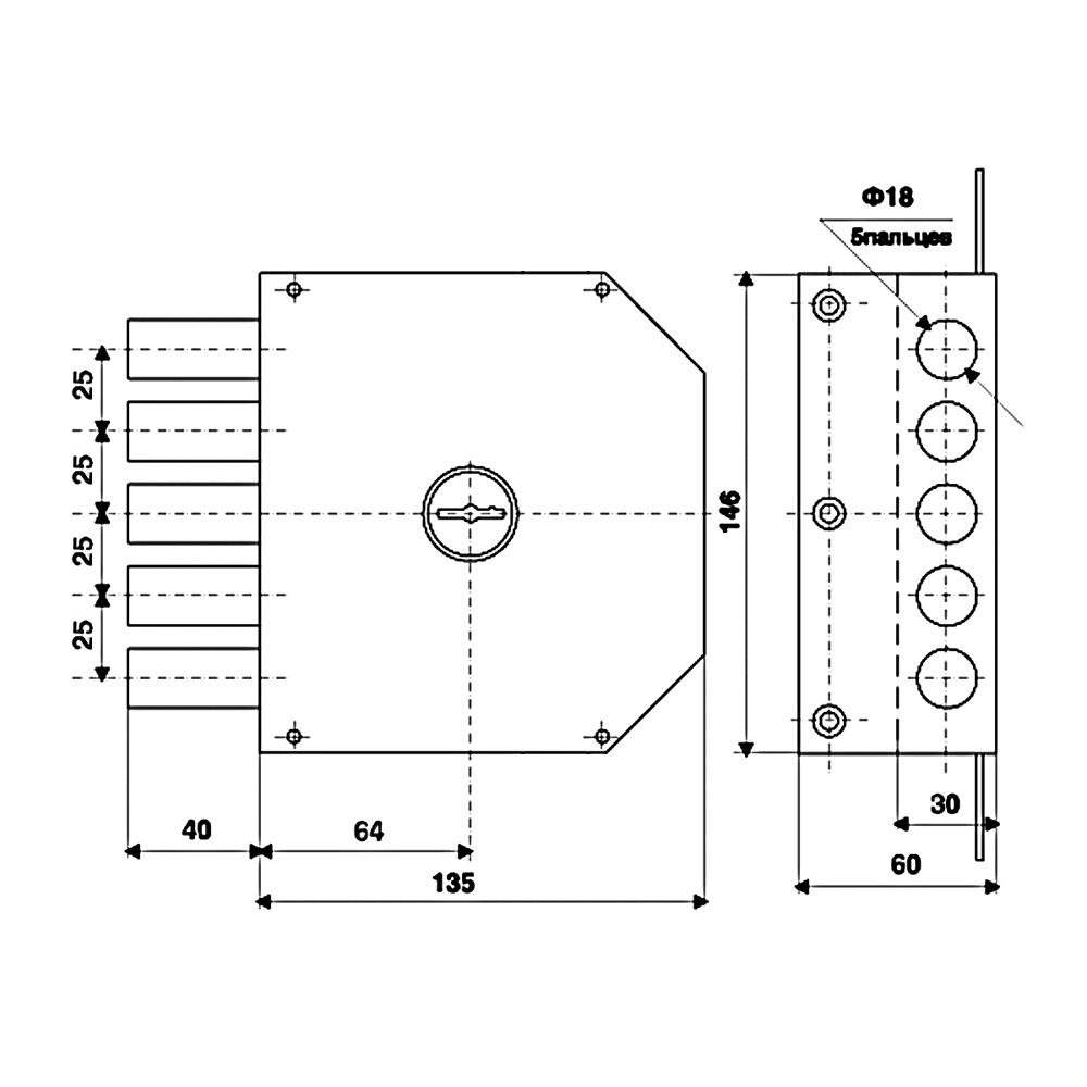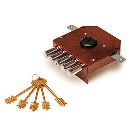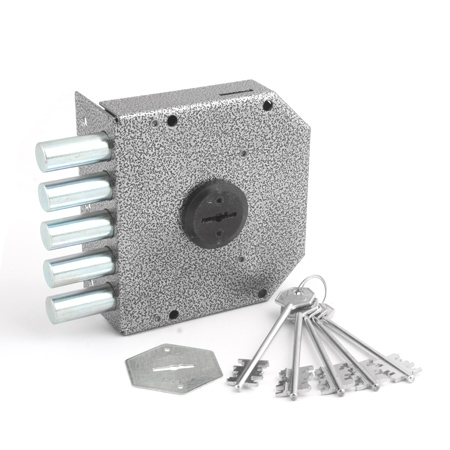 Накладной замок"Класс" GSS-001 с пятью ригелями и двумя внутренними тягами.Может монтироваться как на входные металлические так и на деревянные двери.
