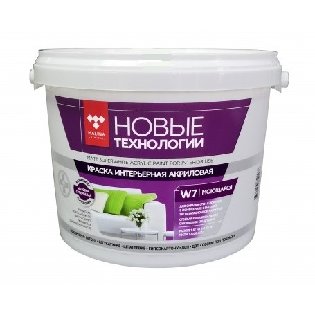 Область применения: Краска акриловая для стен и потолков моющаяся предназначена для высококачественной окраски стен и потолков внутри бытовых и производственных помещений с повышенной эксплуатационной нагрузкой, требующих частой влажной уборки с применением моющих и дезинфицирующих средств: Офисы, залы, вестибюли, коридоры, лестничные клетки в учебных и административных учреждениях, предприятиях торговли и общественного питания, зрелищных и спортивных сооружениях, гостиницах, вокзалах, а в быту кухни, коридоры и ванные комнаты.
