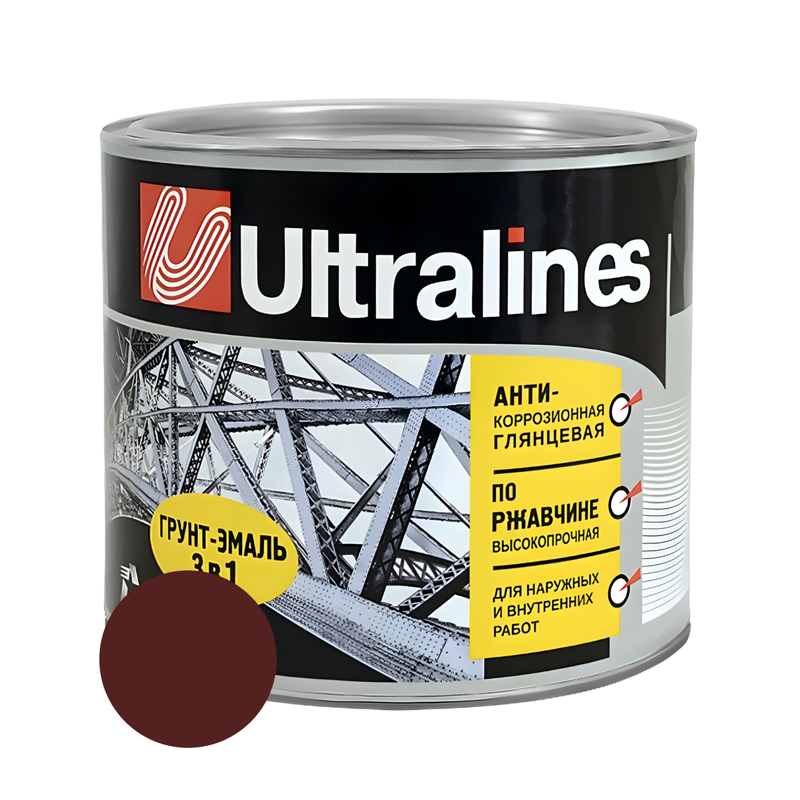 Грунт-эмаль по ржавчине ULTRA LINES 3 в 1 глянцевая, красно-коричневая 1,8 кг